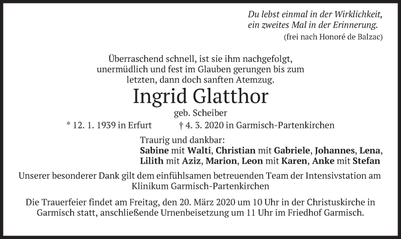 Hier finden Sie alle Traueranzeigen aus der Zeitung, die bisher für Ingrid Glatthor erschienen sind. Weitere Traueranzeigen, die in der Zeitung erscheinen, werden hier ebenfalls aufgelistet