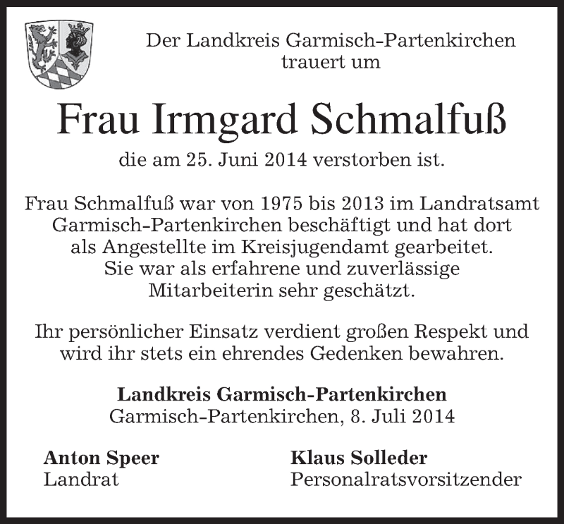 Hier finden Sie alle Traueranzeigen aus der Zeitung, die bisher für Irmgard Schmalfuß erschienen sind. Weitere Traueranzeigen, die in der Zeitung erscheinen, werden hier ebenfalls aufgelistet