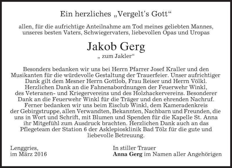 Hier finden Sie alle Traueranzeigen aus der Zeitung, die bisher für Jakob Gerg erschienen sind. Weitere Traueranzeigen, die in der Zeitung erscheinen, werden hier ebenfalls aufgelistet