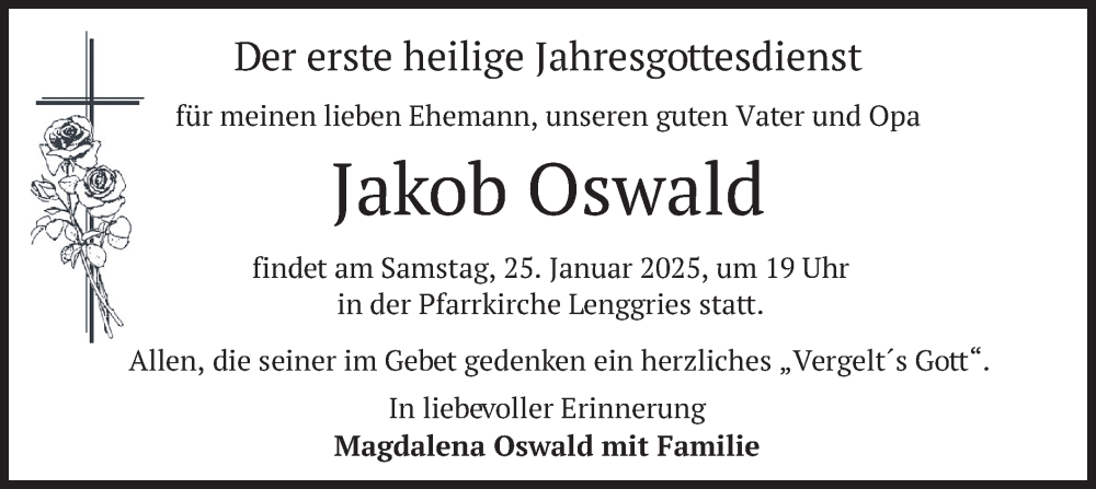 Hier finden Sie alle Traueranzeigen aus der Zeitung, die bisher für Jakob Oswald erschienen sind. Weitere Traueranzeigen, die in der Zeitung erscheinen, werden hier ebenfalls aufgelistet