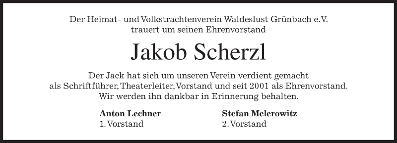 Hier finden Sie alle Traueranzeigen aus der Zeitung, die bisher für Jakob Scherzl erschienen sind. Weitere Traueranzeigen, die in der Zeitung erscheinen, werden hier ebenfalls aufgelistet