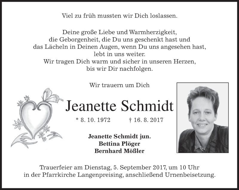 Hier finden Sie alle Traueranzeigen aus der Zeitung, die bisher für Jeanette Schmidt erschienen sind. Weitere Traueranzeigen, die in der Zeitung erscheinen, werden hier ebenfalls aufgelistet