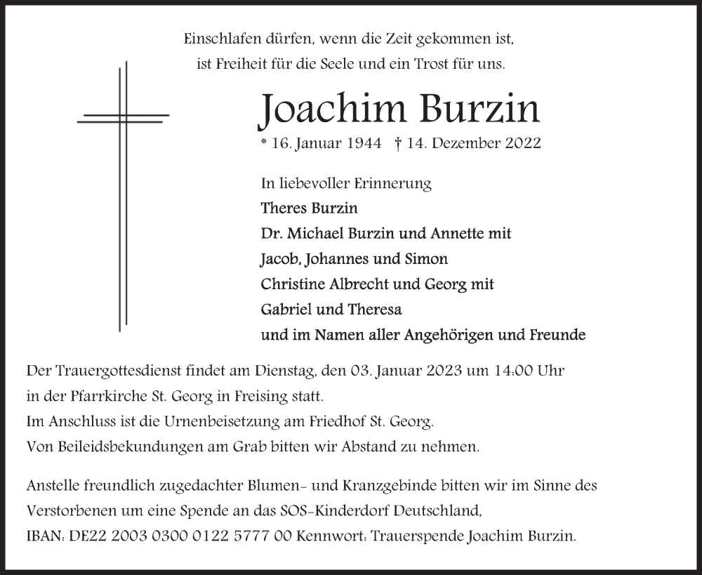 Hier finden Sie alle Traueranzeigen aus der Zeitung, die bisher für Joachim Burzin erschienen sind. Weitere Traueranzeigen, die in der Zeitung erscheinen, werden hier ebenfalls aufgelistet