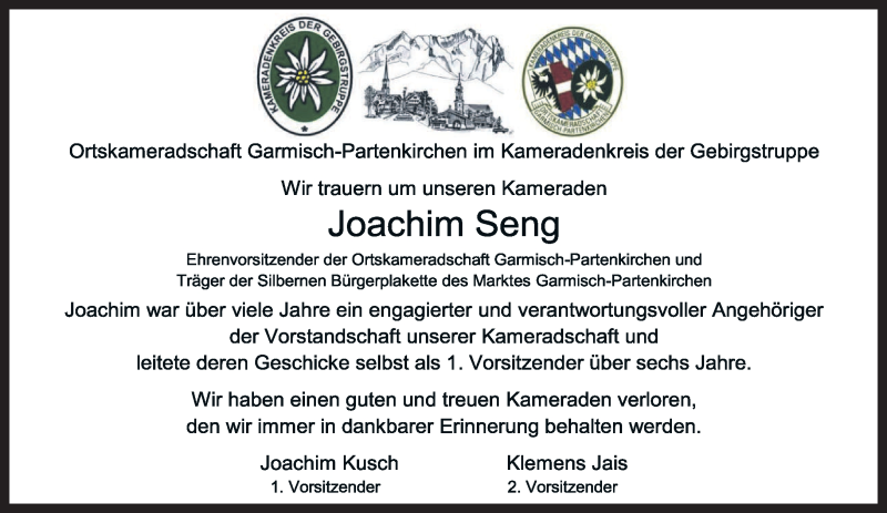 Hier finden Sie alle Traueranzeigen aus der Zeitung, die bisher für Joachim Seng erschienen sind. Weitere Traueranzeigen, die in der Zeitung erscheinen, werden hier ebenfalls aufgelistet