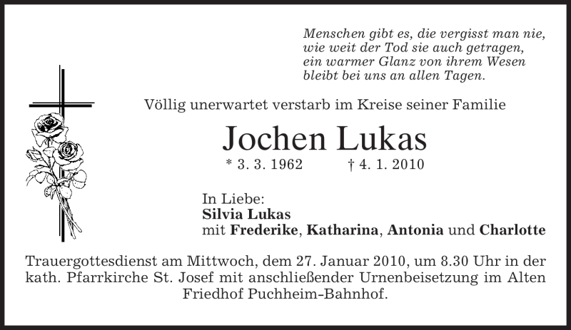 Hier finden Sie alle Traueranzeigen aus der Zeitung, die bisher für Jochen Lukas erschienen sind. Weitere Traueranzeigen, die in der Zeitung erscheinen, werden hier ebenfalls aufgelistet