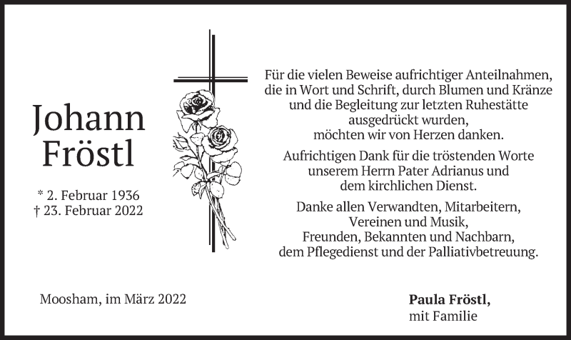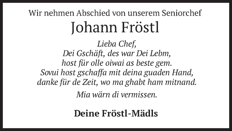 Hier finden Sie alle Traueranzeigen aus der Zeitung, die bisher für Johann Fröstl erschienen sind. Weitere Traueranzeigen, die in der Zeitung erscheinen, werden hier ebenfalls aufgelistet
