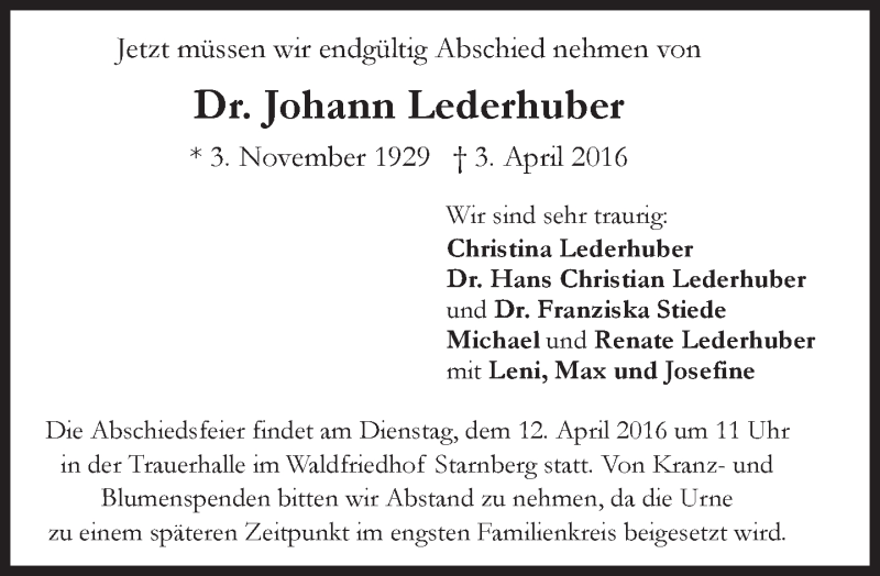 Hier finden Sie alle Traueranzeigen aus der Zeitung, die bisher für Johann Lederhuber erschienen sind. Weitere Traueranzeigen, die in der Zeitung erscheinen, werden hier ebenfalls aufgelistet