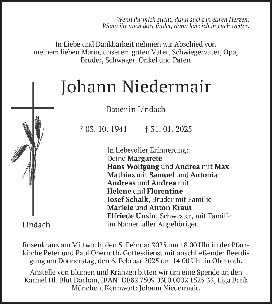 Hier finden Sie alle Traueranzeigen aus der Zeitung, die bisher für Johann Niedermair erschienen sind. Weitere Traueranzeigen, die in der Zeitung erscheinen, werden hier ebenfalls aufgelistet