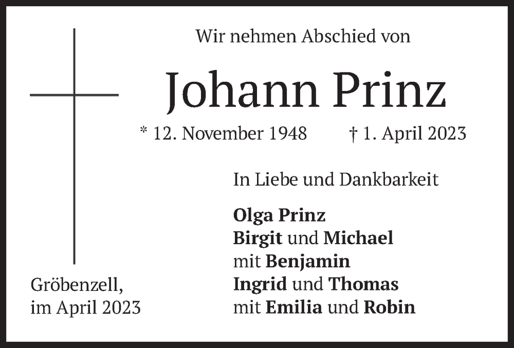 Hier finden Sie alle Traueranzeigen aus der Zeitung, die bisher für Johann Prinz erschienen sind. Weitere Traueranzeigen, die in der Zeitung erscheinen, werden hier ebenfalls aufgelistet