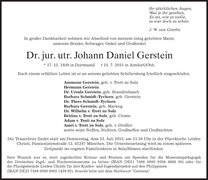 Hier finden Sie alle Traueranzeigen aus der Zeitung, die bisher für Johann Daniel Gerstein erschienen sind. Weitere Traueranzeigen, die in der Zeitung erscheinen, werden hier ebenfalls aufgelistet