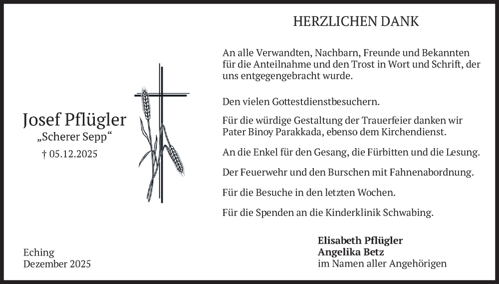 Hier finden Sie alle Traueranzeigen aus der Zeitung, die bisher für Josef Andreas Pflügler erschienen sind. Weitere Traueranzeigen, die in der Zeitung erscheinen, werden hier ebenfalls aufgelistet