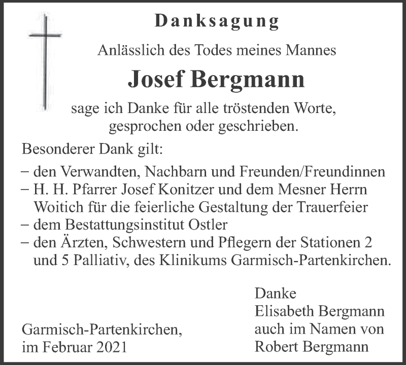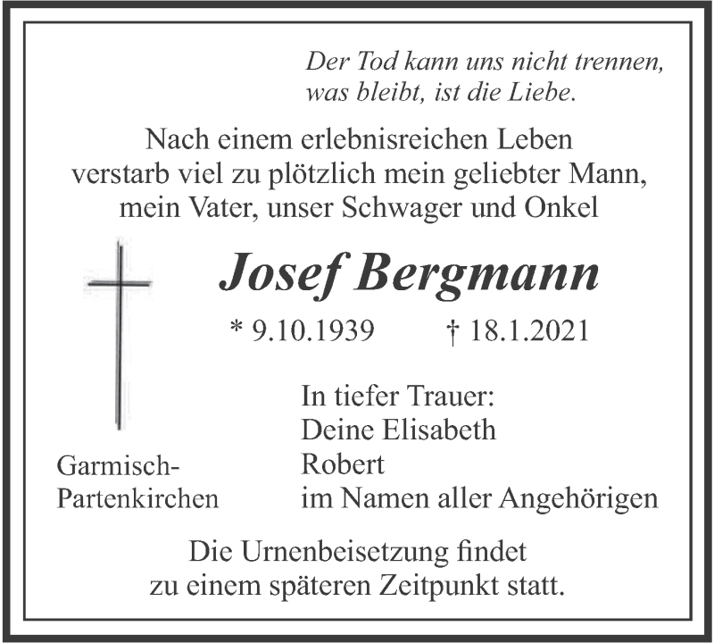 Hier finden Sie alle Traueranzeigen aus der Zeitung, die bisher für Josef Bergmann erschienen sind. Weitere Traueranzeigen, die in der Zeitung erscheinen, werden hier ebenfalls aufgelistet