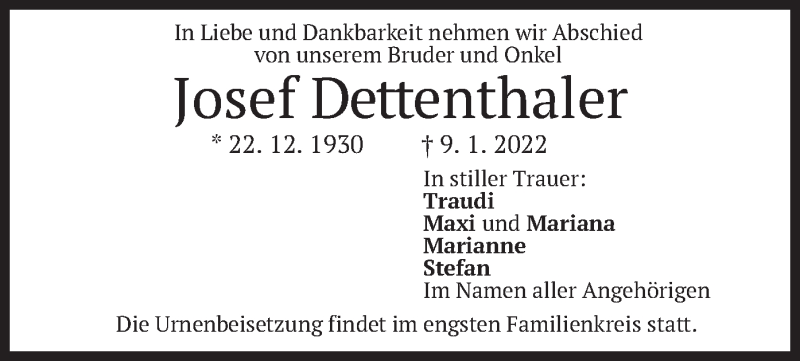 Hier finden Sie alle Traueranzeigen aus der Zeitung, die bisher für Josef Dettenthaler erschienen sind. Weitere Traueranzeigen, die in der Zeitung erscheinen, werden hier ebenfalls aufgelistet