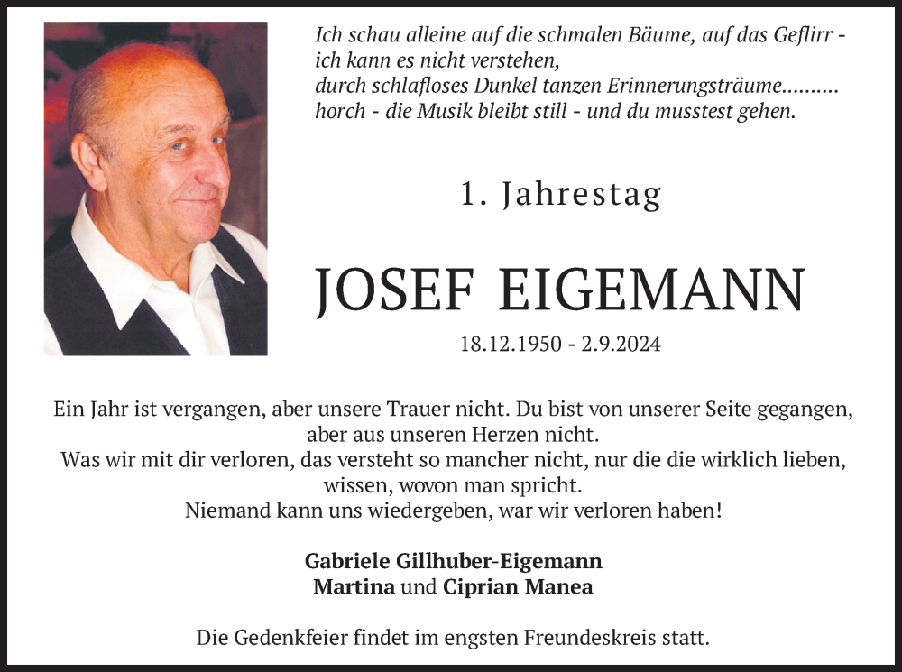 Hier finden Sie alle Traueranzeigen aus der Zeitung, die bisher für Josef Eigemann erschienen sind. Weitere Traueranzeigen, die in der Zeitung erscheinen, werden hier ebenfalls aufgelistet