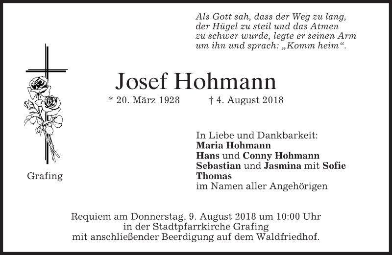 Hier finden Sie alle Traueranzeigen aus der Zeitung, die bisher für Josef Hohmann erschienen sind. Weitere Traueranzeigen, die in der Zeitung erscheinen, werden hier ebenfalls aufgelistet