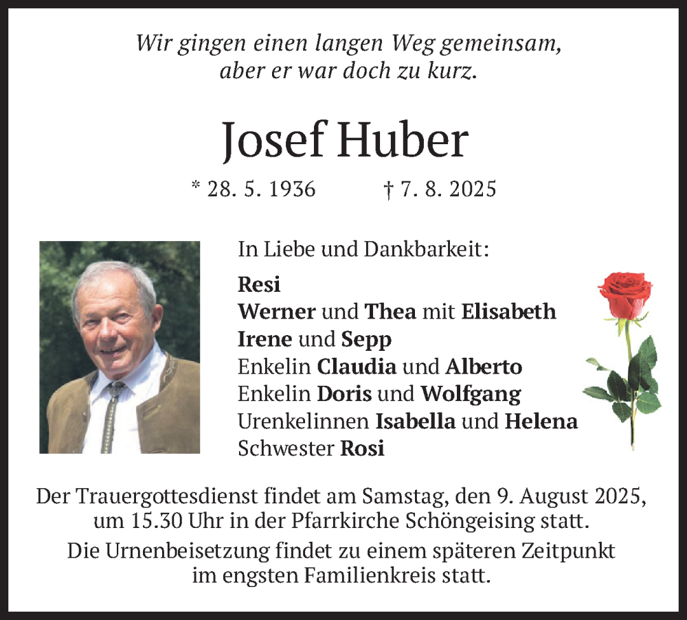 Hier finden Sie alle Traueranzeigen aus der Zeitung, die bisher für Josef Huber erschienen sind. Weitere Traueranzeigen, die in der Zeitung erscheinen, werden hier ebenfalls aufgelistet