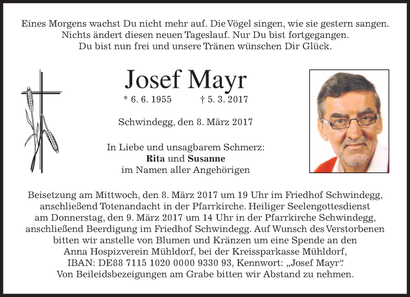 Hier finden Sie alle Traueranzeigen aus der Zeitung, die bisher für Josef Mayr erschienen sind. Weitere Traueranzeigen, die in der Zeitung erscheinen, werden hier ebenfalls aufgelistet