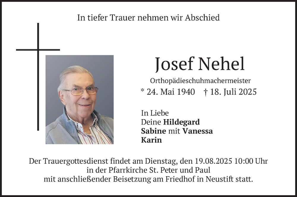 Hier finden Sie alle Traueranzeigen aus der Zeitung, die bisher für Josef Nehel erschienen sind. Weitere Traueranzeigen, die in der Zeitung erscheinen, werden hier ebenfalls aufgelistet
