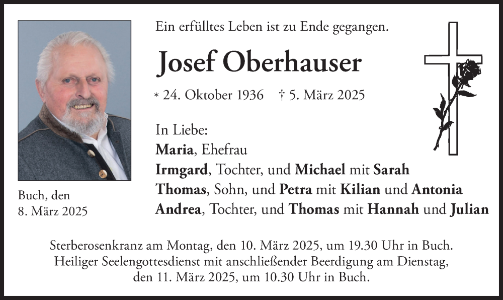 Hier finden Sie alle Traueranzeigen aus der Zeitung, die bisher für Josef Oberhauser erschienen sind. Weitere Traueranzeigen, die in der Zeitung erscheinen, werden hier ebenfalls aufgelistet