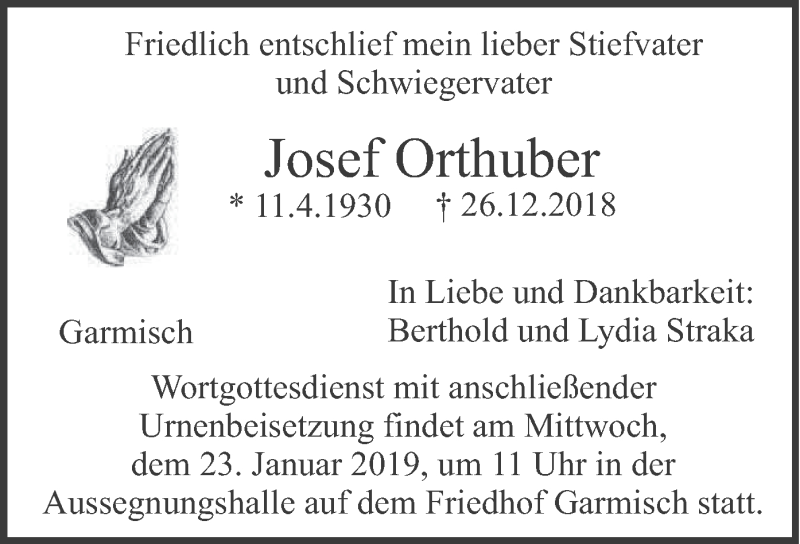 Hier finden Sie alle Traueranzeigen aus der Zeitung, die bisher für Josef Orthuber erschienen sind. Weitere Traueranzeigen, die in der Zeitung erscheinen, werden hier ebenfalls aufgelistet