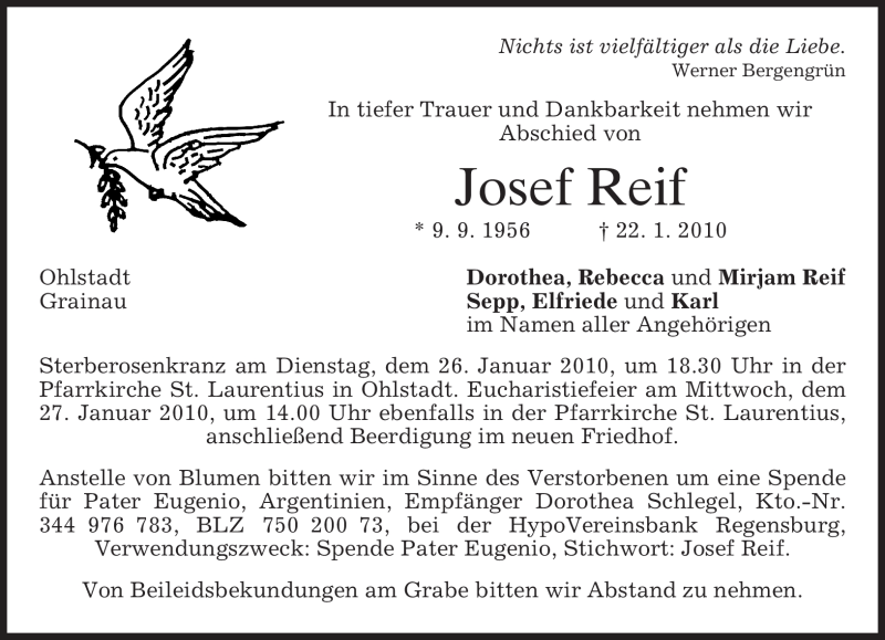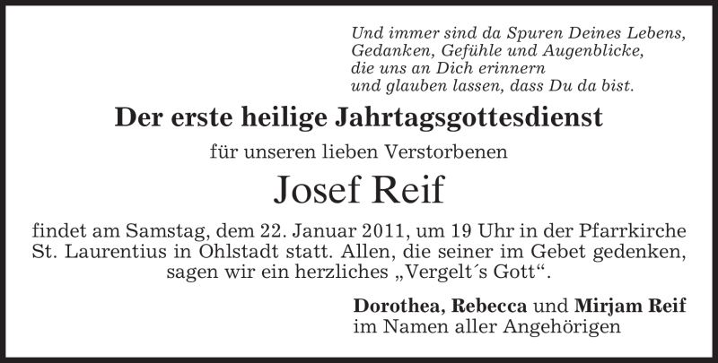 Hier finden Sie alle Traueranzeigen aus der Zeitung, die bisher für Josef Reif erschienen sind. Weitere Traueranzeigen, die in der Zeitung erscheinen, werden hier ebenfalls aufgelistet
