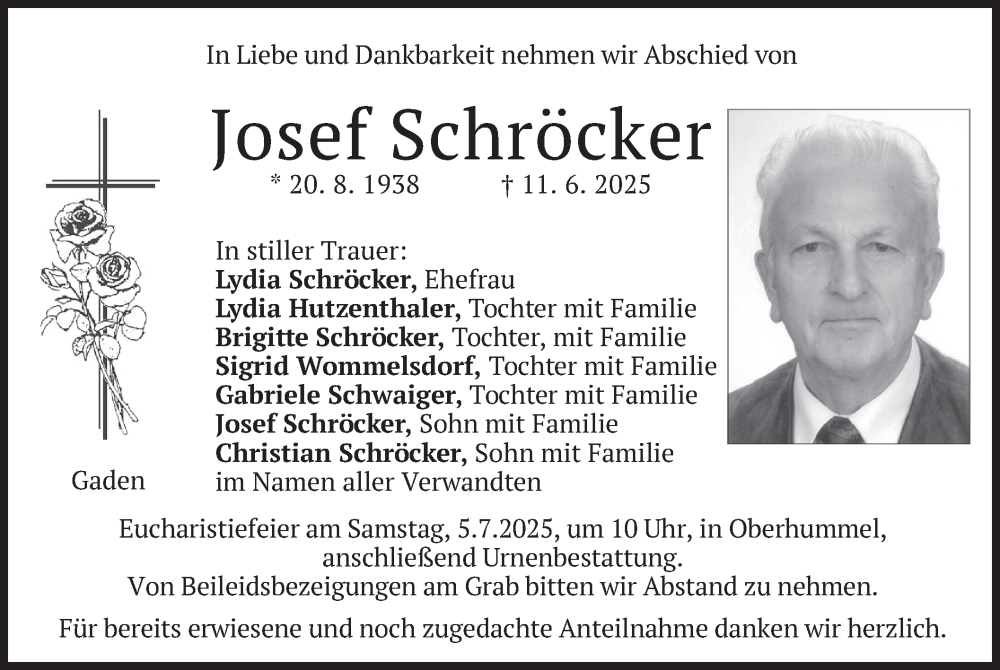 Hier finden Sie alle Traueranzeigen aus der Zeitung, die bisher für Josef Schröcker erschienen sind. Weitere Traueranzeigen, die in der Zeitung erscheinen, werden hier ebenfalls aufgelistet