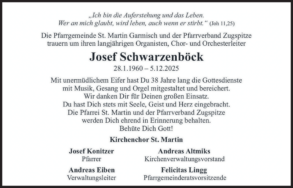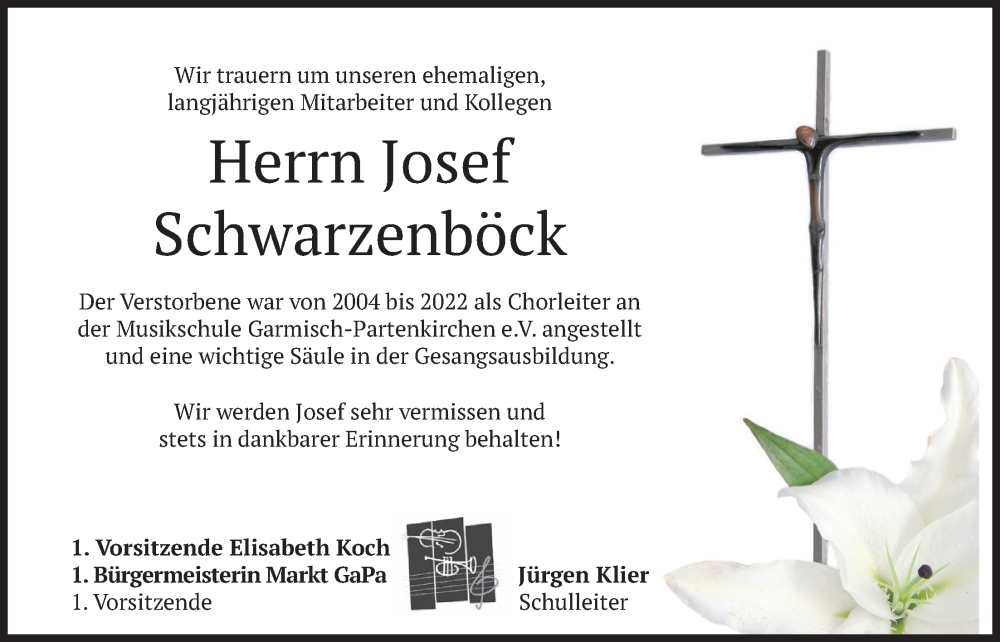 Hier finden Sie alle Traueranzeigen aus der Zeitung, die bisher für Josef Schwarzenböck erschienen sind. Weitere Traueranzeigen, die in der Zeitung erscheinen, werden hier ebenfalls aufgelistet