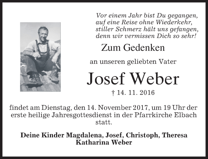 Hier finden Sie alle Traueranzeigen aus der Zeitung, die bisher für Josef Weber erschienen sind. Weitere Traueranzeigen, die in der Zeitung erscheinen, werden hier ebenfalls aufgelistet