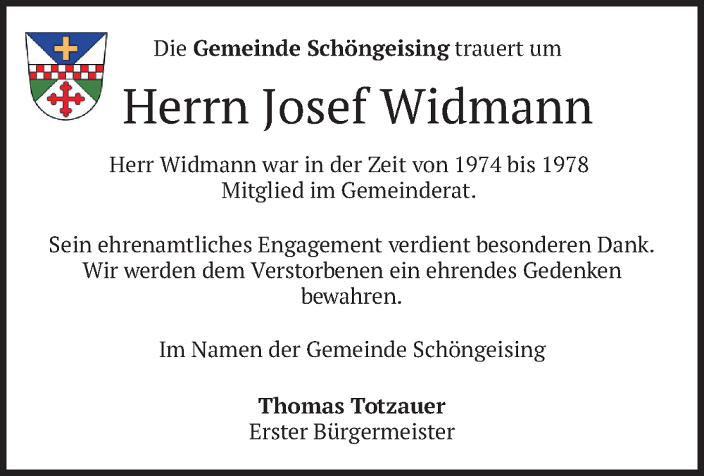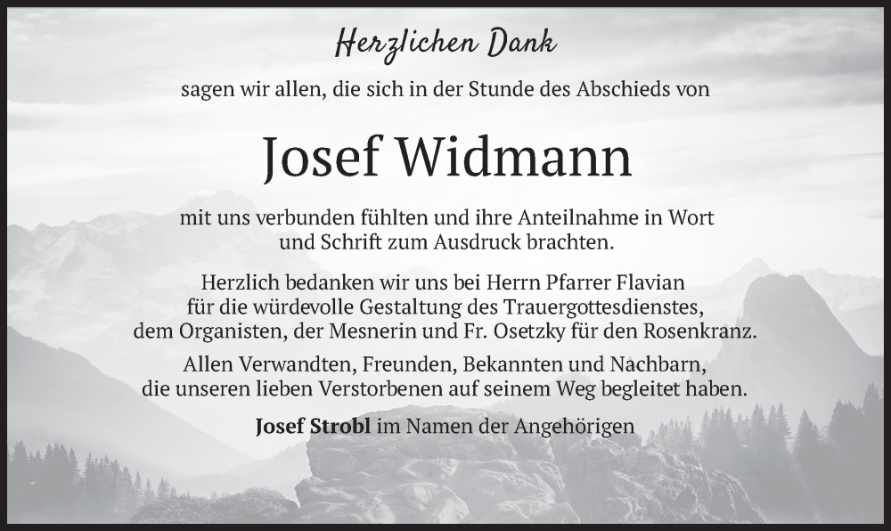 Hier finden Sie alle Traueranzeigen aus der Zeitung, die bisher für Josef Widmann erschienen sind. Weitere Traueranzeigen, die in der Zeitung erscheinen, werden hier ebenfalls aufgelistet