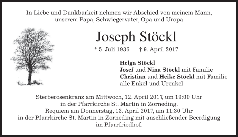 Hier finden Sie alle Traueranzeigen aus der Zeitung, die bisher für Joseph Stöckl erschienen sind. Weitere Traueranzeigen, die in der Zeitung erscheinen, werden hier ebenfalls aufgelistet