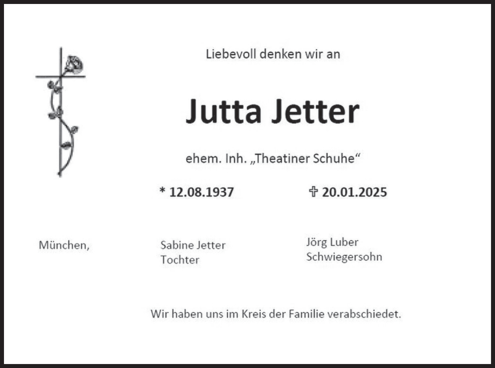 Hier finden Sie alle Traueranzeigen aus der Zeitung, die bisher für Jutta Jetter erschienen sind. Weitere Traueranzeigen, die in der Zeitung erscheinen, werden hier ebenfalls aufgelistet