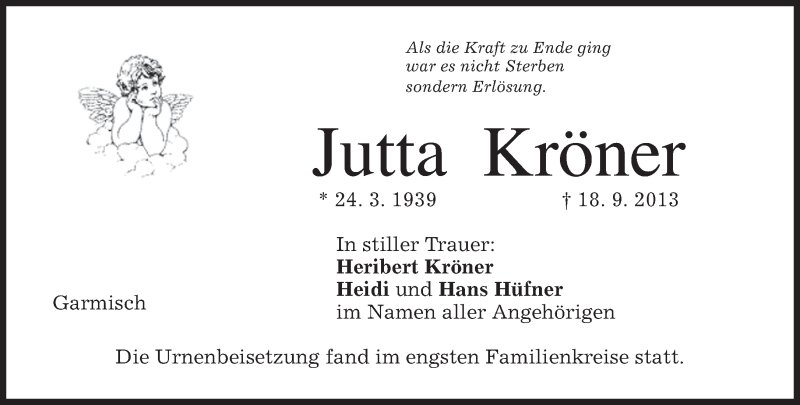 Hier finden Sie alle Traueranzeigen aus der Zeitung, die bisher für Jutta Kröner erschienen sind. Weitere Traueranzeigen, die in der Zeitung erscheinen, werden hier ebenfalls aufgelistet