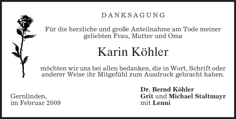 Hier finden Sie alle Traueranzeigen aus der Zeitung, die bisher für Karin Köhler erschienen sind. Weitere Traueranzeigen, die in der Zeitung erscheinen, werden hier ebenfalls aufgelistet