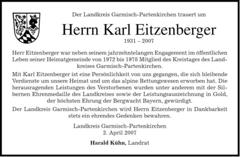 Hier finden Sie alle Traueranzeigen aus der Zeitung, die bisher für Karl Eitzenberger erschienen sind. Weitere Traueranzeigen, die in der Zeitung erscheinen, werden hier ebenfalls aufgelistet