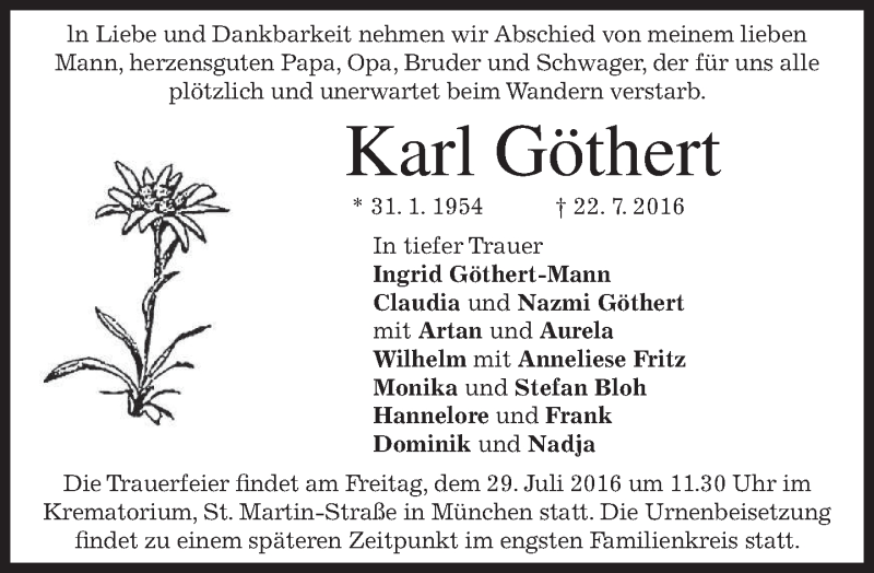 Hier finden Sie alle Traueranzeigen aus der Zeitung, die bisher für Karl Göthert erschienen sind. Weitere Traueranzeigen, die in der Zeitung erscheinen, werden hier ebenfalls aufgelistet