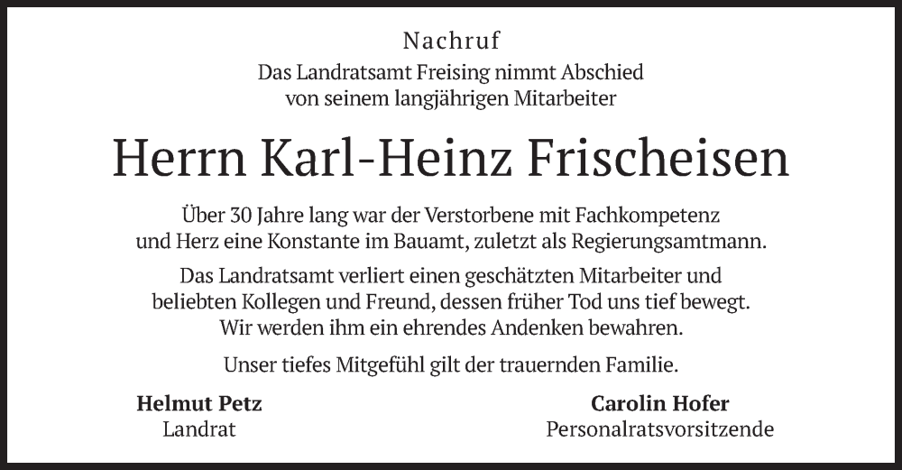 Hier finden Sie alle Traueranzeigen aus der Zeitung, die bisher für Karl-Heinz Frischeisen erschienen sind. Weitere Traueranzeigen, die in der Zeitung erscheinen, werden hier ebenfalls aufgelistet