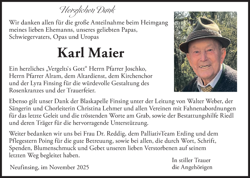 Hier finden Sie alle Traueranzeigen aus der Zeitung, die bisher für Karl Maier erschienen sind. Weitere Traueranzeigen, die in der Zeitung erscheinen, werden hier ebenfalls aufgelistet