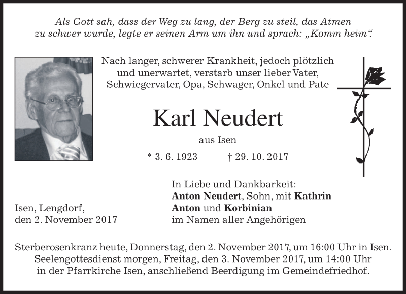 Hier finden Sie alle Traueranzeigen aus der Zeitung, die bisher für Karl Neudert erschienen sind. Weitere Traueranzeigen, die in der Zeitung erscheinen, werden hier ebenfalls aufgelistet