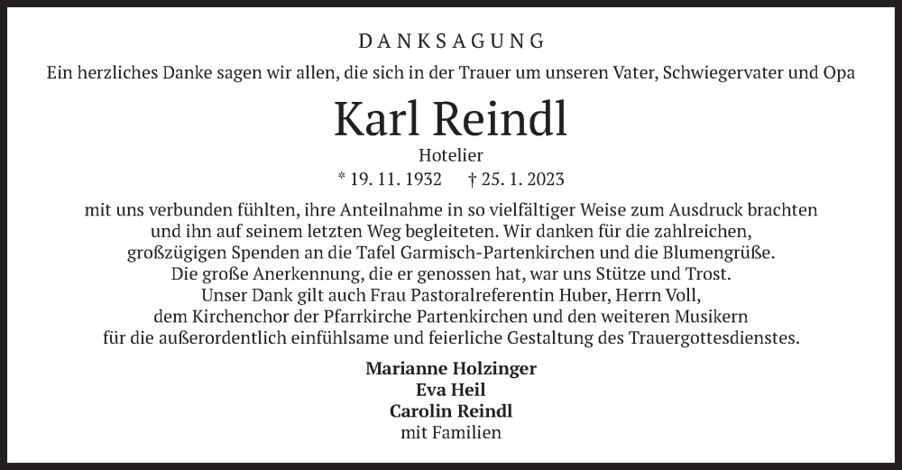 Hier finden Sie alle Traueranzeigen aus der Zeitung, die bisher für Karl Reindl erschienen sind. Weitere Traueranzeigen, die in der Zeitung erscheinen, werden hier ebenfalls aufgelistet