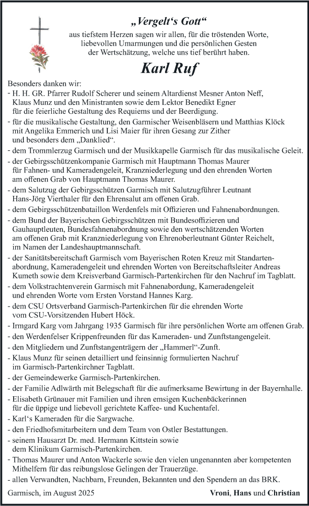 Hier finden Sie alle Traueranzeigen aus der Zeitung, die bisher für Karl Ruf erschienen sind. Weitere Traueranzeigen, die in der Zeitung erscheinen, werden hier ebenfalls aufgelistet