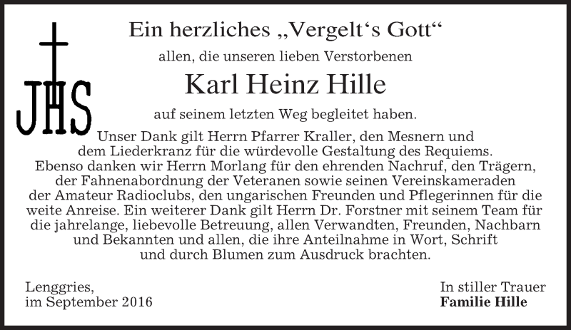 Hier finden Sie alle Traueranzeigen aus der Zeitung, die bisher für Karl Heinz Hille erschienen sind. Weitere Traueranzeigen, die in der Zeitung erscheinen, werden hier ebenfalls aufgelistet