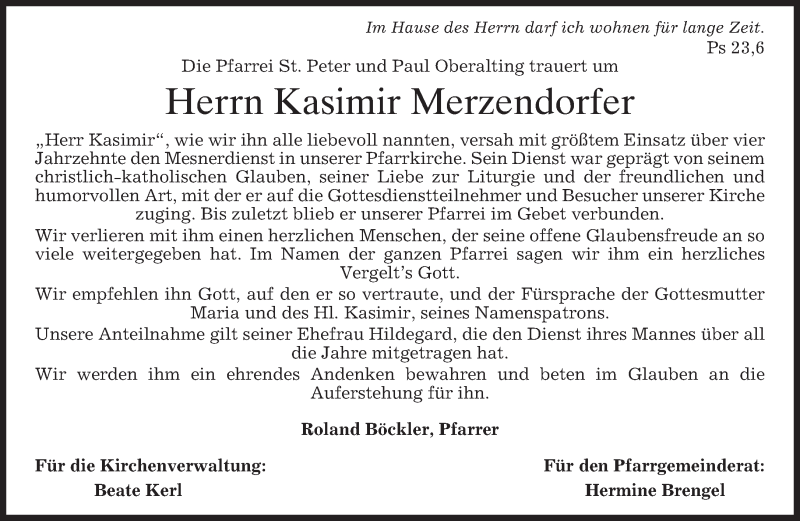 Hier finden Sie alle Traueranzeigen aus der Zeitung, die bisher für Kasimir Merzendorfer erschienen sind. Weitere Traueranzeigen, die in der Zeitung erscheinen, werden hier ebenfalls aufgelistet