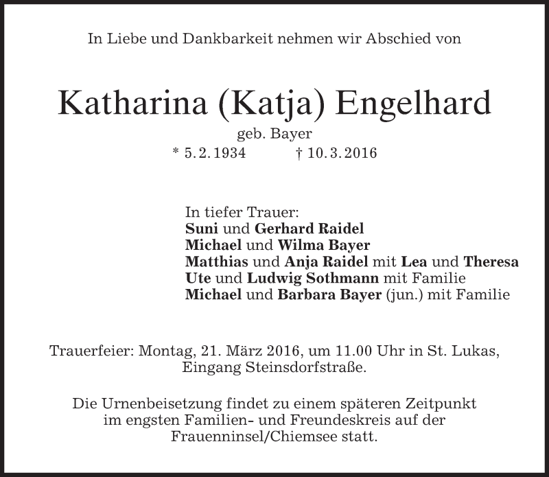 Hier finden Sie alle Traueranzeigen aus der Zeitung, die bisher für Katharina Engelhard erschienen sind. Weitere Traueranzeigen, die in der Zeitung erscheinen, werden hier ebenfalls aufgelistet