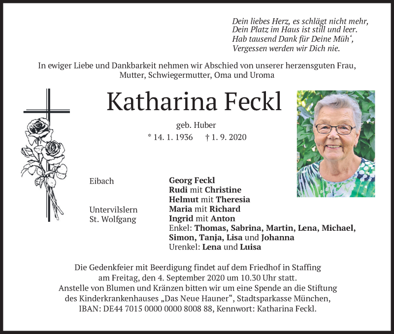 Hier finden Sie alle Traueranzeigen aus der Zeitung, die bisher für Katharina Feckl erschienen sind. Weitere Traueranzeigen, die in der Zeitung erscheinen, werden hier ebenfalls aufgelistet