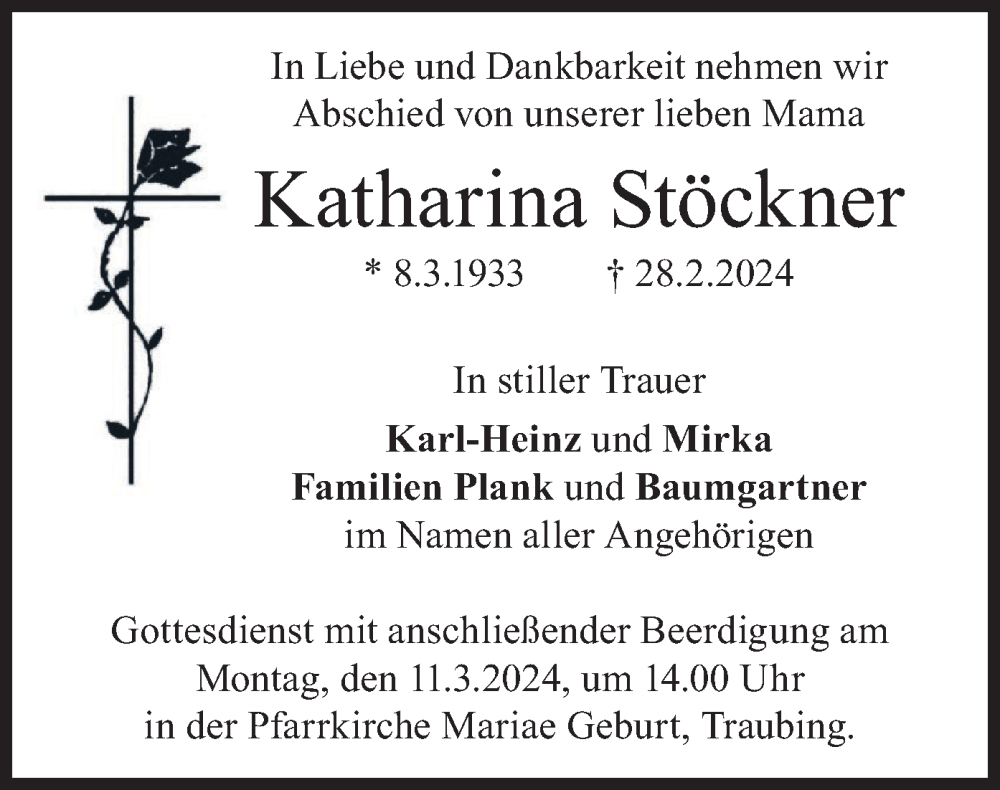 Hier finden Sie alle Traueranzeigen aus der Zeitung, die bisher für Katharina Stöckner erschienen sind. Weitere Traueranzeigen, die in der Zeitung erscheinen, werden hier ebenfalls aufgelistet