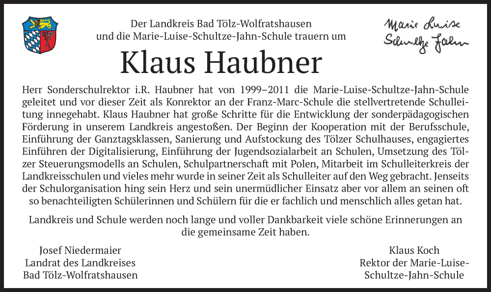 Hier finden Sie alle Traueranzeigen aus der Zeitung, die bisher für Klaus Haubner erschienen sind. Weitere Traueranzeigen, die in der Zeitung erscheinen, werden hier ebenfalls aufgelistet