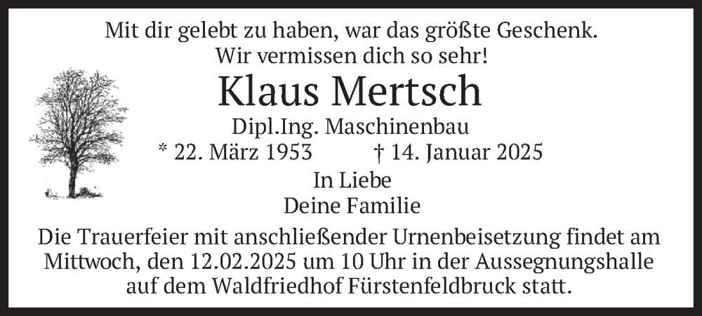 Hier finden Sie alle Traueranzeigen aus der Zeitung, die bisher für Klaus Mertsch erschienen sind. Weitere Traueranzeigen, die in der Zeitung erscheinen, werden hier ebenfalls aufgelistet