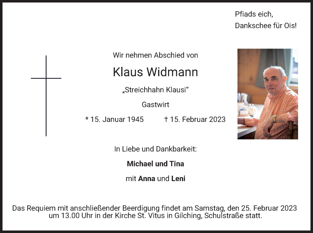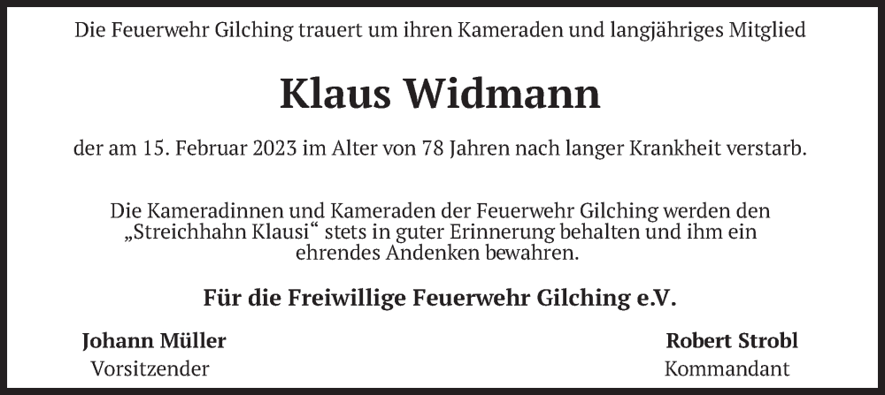 Hier finden Sie alle Traueranzeigen aus der Zeitung, die bisher für Klaus Widmann erschienen sind. Weitere Traueranzeigen, die in der Zeitung erscheinen, werden hier ebenfalls aufgelistet