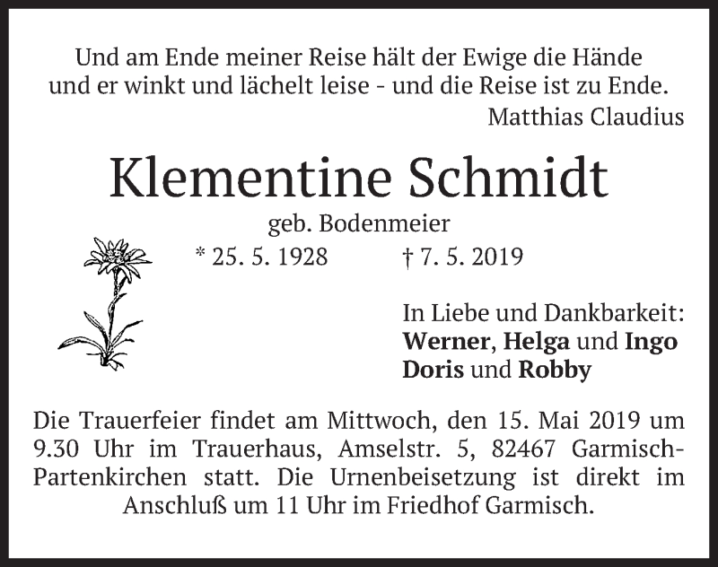 Hier finden Sie alle Traueranzeigen aus der Zeitung, die bisher für Klementine Schmidt erschienen sind. Weitere Traueranzeigen, die in der Zeitung erscheinen, werden hier ebenfalls aufgelistet