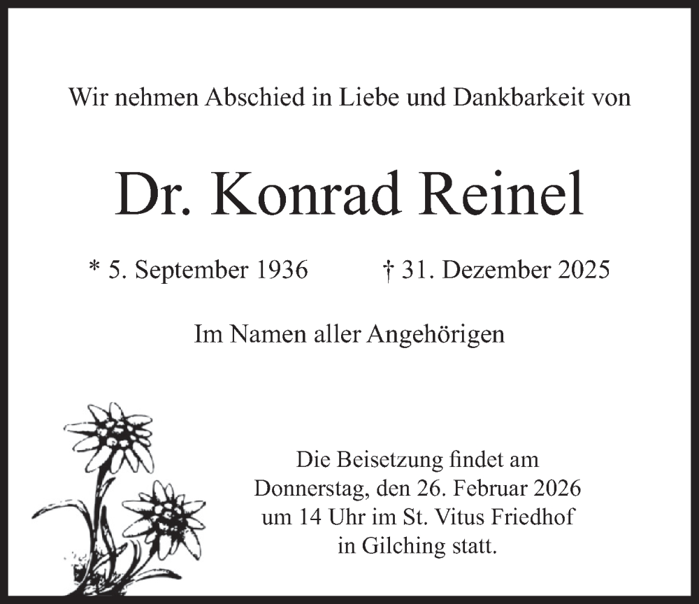 Hier finden Sie alle Traueranzeigen aus der Zeitung, die bisher für Konrad Reinel erschienen sind. Weitere Traueranzeigen, die in der Zeitung erscheinen, werden hier ebenfalls aufgelistet